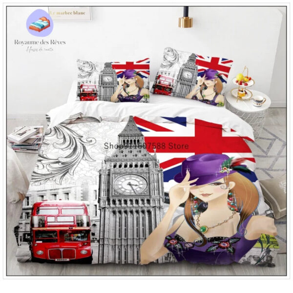 Avec la housse de couette Angleterre 1 Personne, transformez votre chambre en un espace qui respire l’énergie vibrante de Londres. Ce modèle unique capture l’essence de la capitale britannique à travers des motifs artistiques évocateurs. Laissez-vous séduire par l’ambiance urbaine et chic qu’elle procure, idéale pour ceux qui apprécient le dynamisme de cette ville iconique.