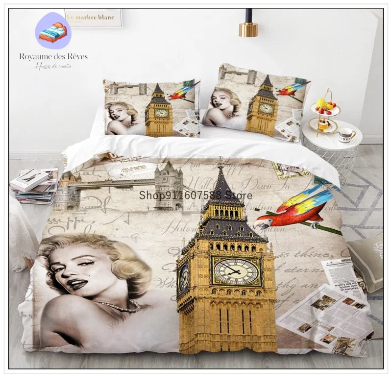 Disponible en plusieurs tailles, l’Angleterre Marilyn Monroe offre une flexibilité qui s’adapte à toute chambre, qu’elle soit moderne ou vintage. Chaque housse s’accompagne de deux taies d’oreiller assorties, créant ainsi une harmonie parfaite et ajoutant une touche finale élégante à votre literie.