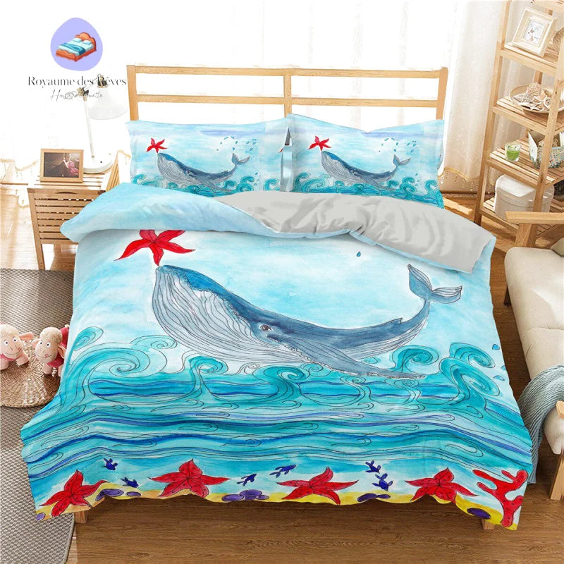 Découvrez la housse de couette Baleine Océan pour une ambiance marine