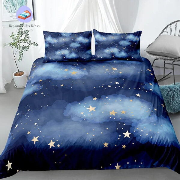 Conçue pour ceux qui apprécient autant le style que le confort, la housse Espace Garçon se distingue par ses propriétés esthétiques et pratiques. Son design moderne rappelle une peinture aquarelle, captivant l’œil par sa délicatesse et son immersion totale dans une ambiance stellaire des plus apaisantes.