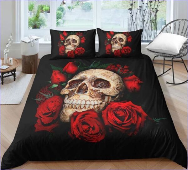 Avec un motif audacieux de crânes et de roses, elle est parfaite pour ceux qui souhaitent ajouter une touche de mystère et de beauté à leur chambre. Ce design captivant s’intègre harmonieusement dans une variété de styles de décoration, faisant de cette housse de couette une addition polyvalente à votre maison.