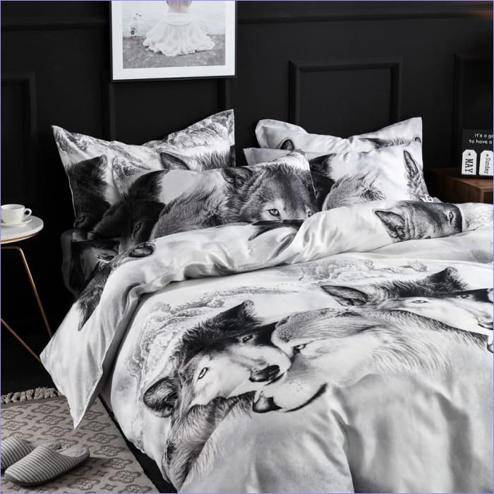 Qualité supérieure et confort avec la Housse de Couette Loup Noir et Blanc
