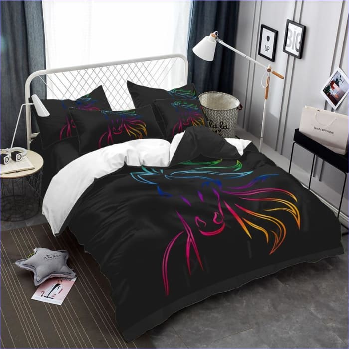 Housse de Couette Tête de Cheval Arc en Ciel : un voyage coloré pour vos nuits