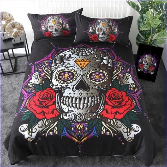 Un sommeil confortable avec la Housse de Couette Tête de Mort Mexicaine et Roses