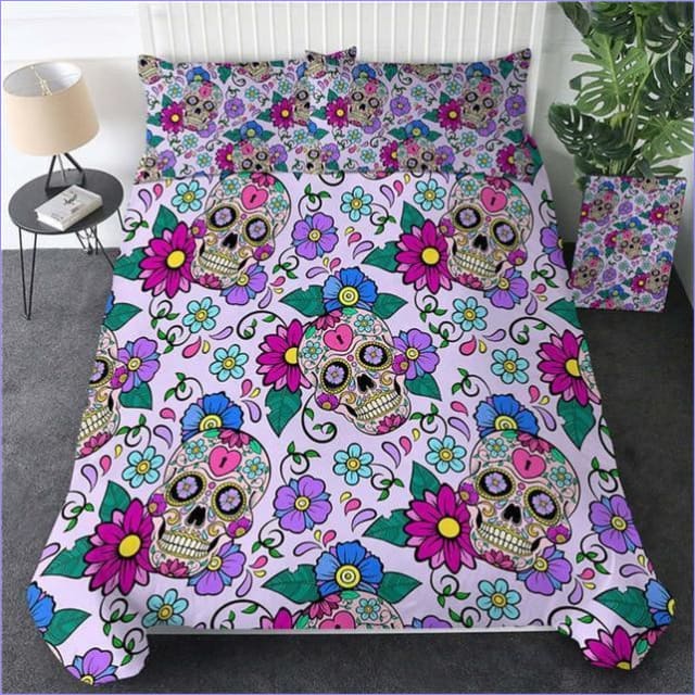Confort et style avec la Housse de Couette Tête de Mort Mexique Rose