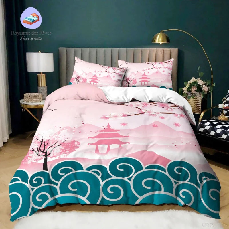 Ma Douce Couette crée des pièces qui racontent une histoire, et la Japonaise Yoga ne fait pas exception. Chaque détail est pensé pour apporter une touche d’authenticité et stimuler les sens. Le mariage des motifs inspirés des cerisiers en fleurs et des temples nous rappelle la beauté éphémère du printemps japonais. Cette housse de couette est un hommage à la simplicité et à la beauté de la nature.