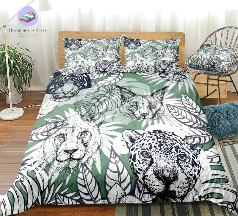 Découvrez Jungle Prédateurs de Ma Douce Couette, une housse de couette unique qui transforme votre espace en une jungle fascinante.