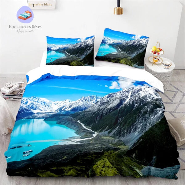 La housse de couette Montagne Alpes évoque l’évasion dans les sommets alpins, une invitation à rêver de paysages grandioses. Sa conception capture l’essence majestueuse des montagnes, apportant un souffle d’air pur et de nature sauvage dans votre chambre. Transformez chaque nuit en un voyage vers les hauteurs.
