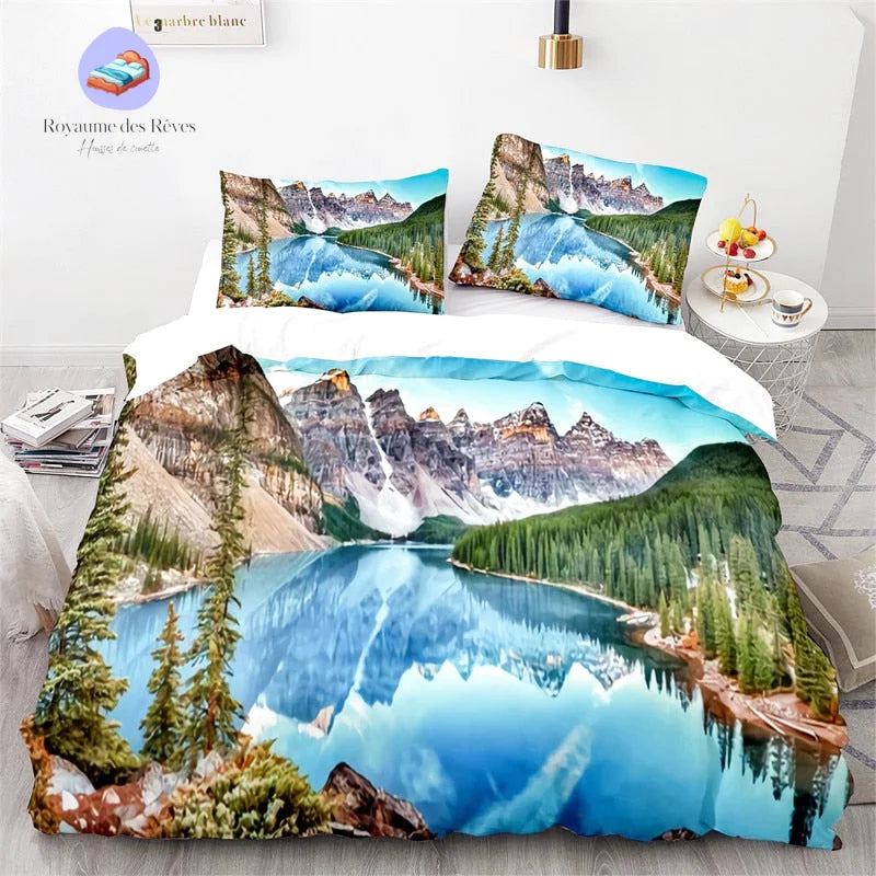 Transformez votre chambre en un havre de paix avec la housse de couette Montagne Belle Vue. Ce produit incarne une évasion pittoresque grâce à son design inspiré des paysages alpins. La beauté de la nature est capturée dans ses moindres détails, vous invitant à une relaxation totale à chaque nuit venue.