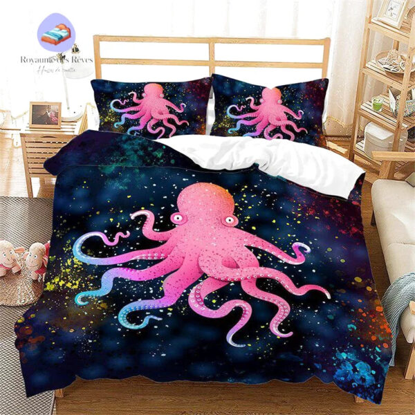 Avec son design contemporain et audacieux, la housse de couette Océan Poulpe s’impose comme une pièce centrale dans une décoration moderne. Les couleurs vives et les effets de profondeur ajoutent une dimension artistique qui enrichit l’ambiance de votre chambre. Cette housse est idéale pour ceux qui cherchent à insuffler une énergie nouvelle et un style affirmé à leur intérieur.