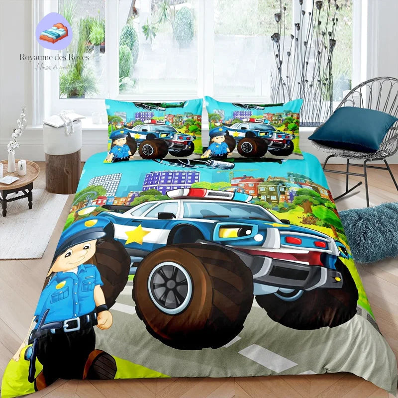 Une housse de couette Police Enfant au style cartoon séduisant