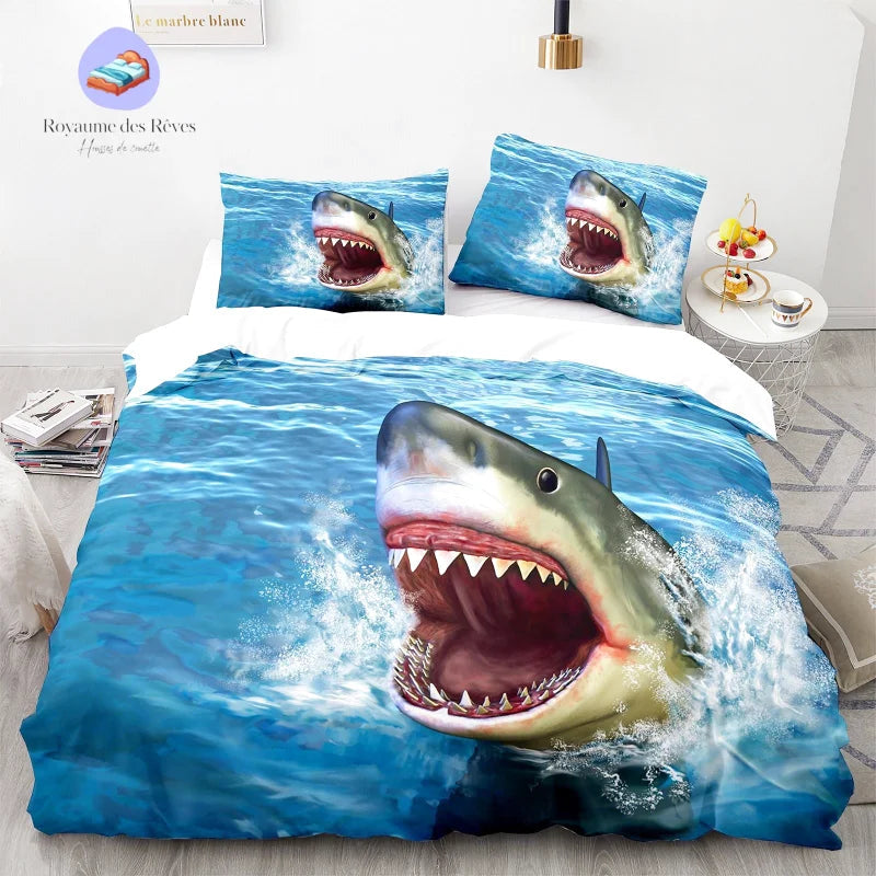 Requin Attaque : une housse de couette dramatique et réaliste pour une immersion totale dans l’océan sauvage.