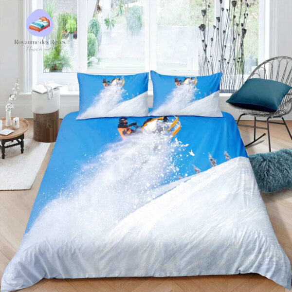 Plongez dans un univers de haute montagne avec la housse de couette Ski Neige. Elle évoque la passion pour les sports d’hiver, capturant l’essence même de la neige et des cimes. Transformez votre chambre en un espace de liberté alpine, où chaque nuit réveille l’enthousiasme des pistes.