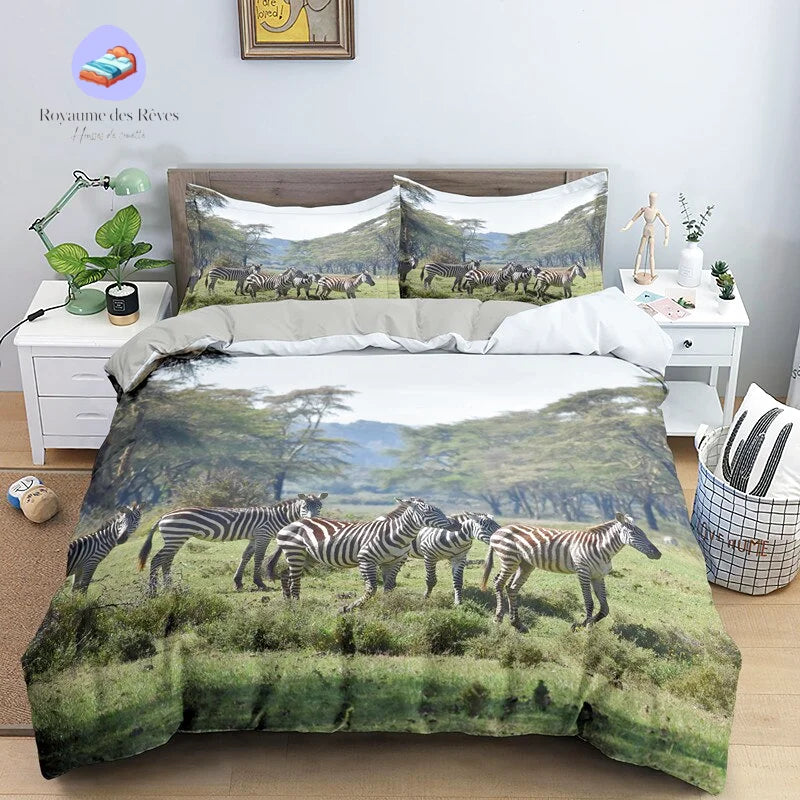 Sensible aux détails, Ma Douce Couette a créé cette housse de couette dans un esprit de charme photographique. En capturant l’essence des zèbres en haute définition, elle transforme votre chambre en un sanctuaire d’esthétique et de confort, tout en promouvant un lien profond avec la nature.